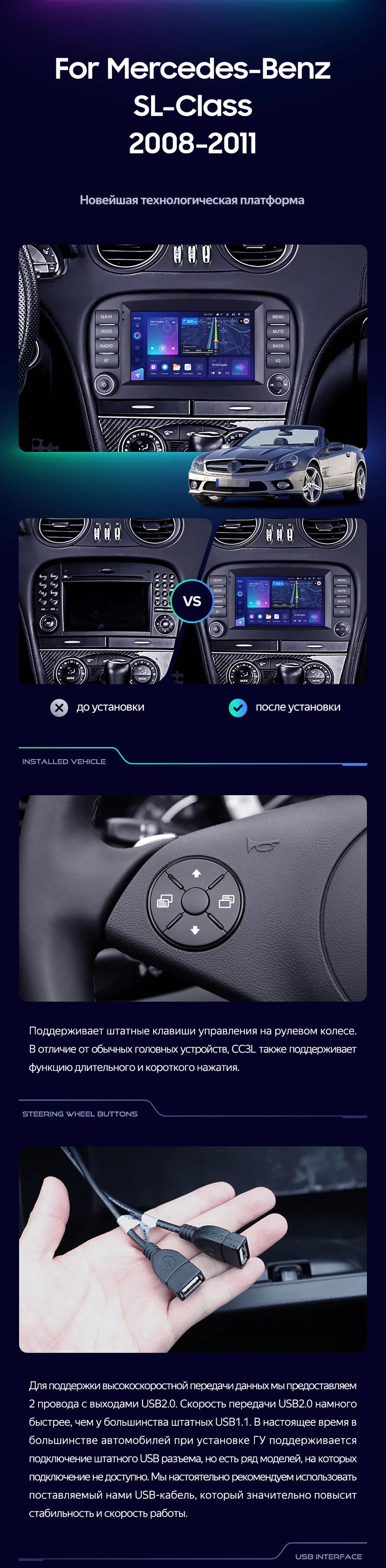 Переходная рамка Mercedes-Benz SL-Class R230 (2008-2011) (7") - купить всего за 7 000 руб. в интернет-магазине в Ульяновск Teyes.com.ru. ✓ Самый лучший выбор мультимедиа ✓ Лучшая замена штатному ГУ ✓ Тел. +7 (800) 775-31-74