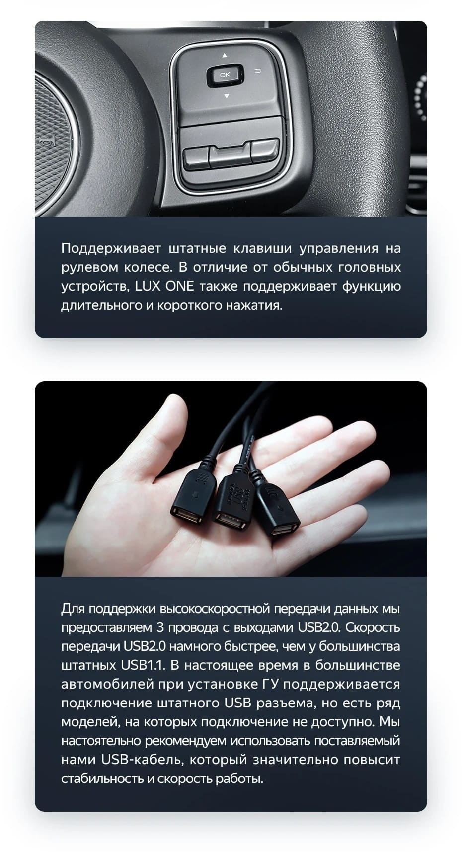 Дизайн CC2 Plus заслуживает отдельной похвалы. Вас порадуют премиальные материалы корпуса, его утончённость и минимализм. Разнообразие стилей интерфейса позволит подобрать те цвета, которые максимально сочетаются с обшивкой и дизайном салона автомобиля.