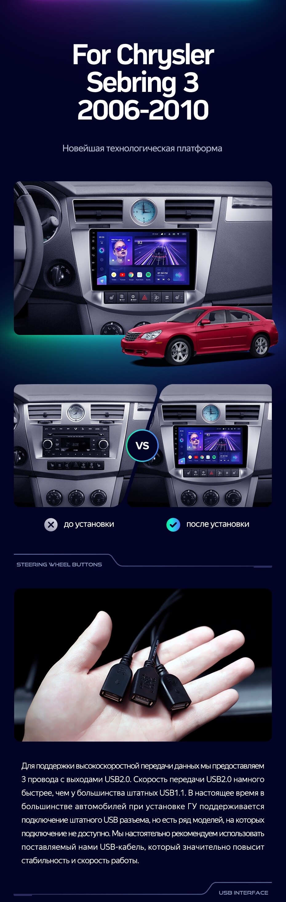 Штатная магнитола Teyes CC3 4/32 Chrysler Sebring 3 JS (2006-2010) - купить всего за 35 430 руб. в интернет-магазине в Ульяновск Teyes.com.ru. ✓ Самый лучший выбор мультимедиа ✓ Лучшая замена штатному ГУ ✓ Тел. +7 (800) 775-31-74