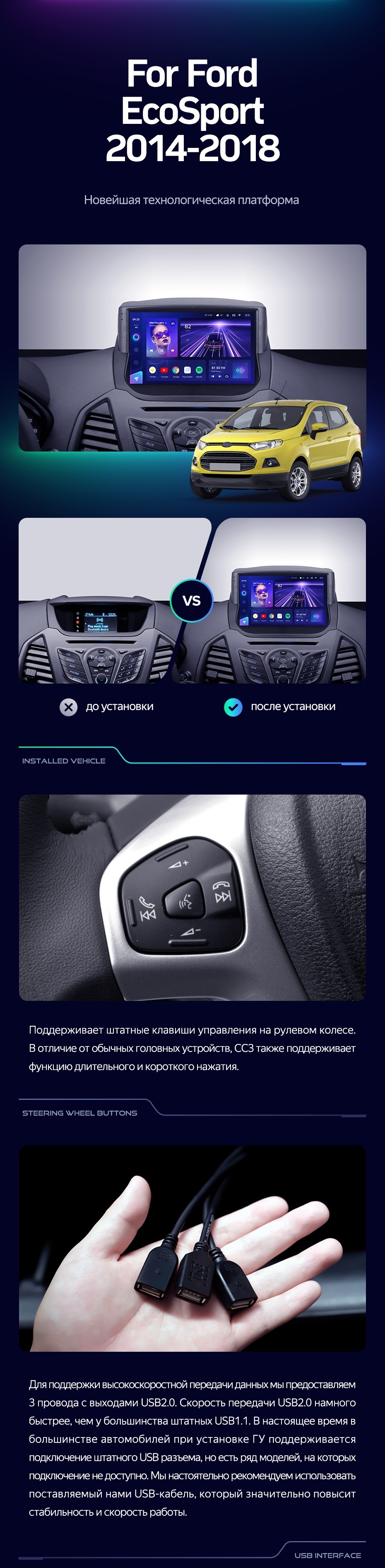 Штатная магнитола Teyes CC3 4/32 Ford EcoSport (2014-2018) F1 - купить всего за 33 530 руб. в интернет-магазине в Ульяновск Teyes.com.ru. ✓ Самый лучший выбор мультимедиа ✓ Лучшая замена штатному ГУ ✓ Тел. +7 (800) 775-31-74