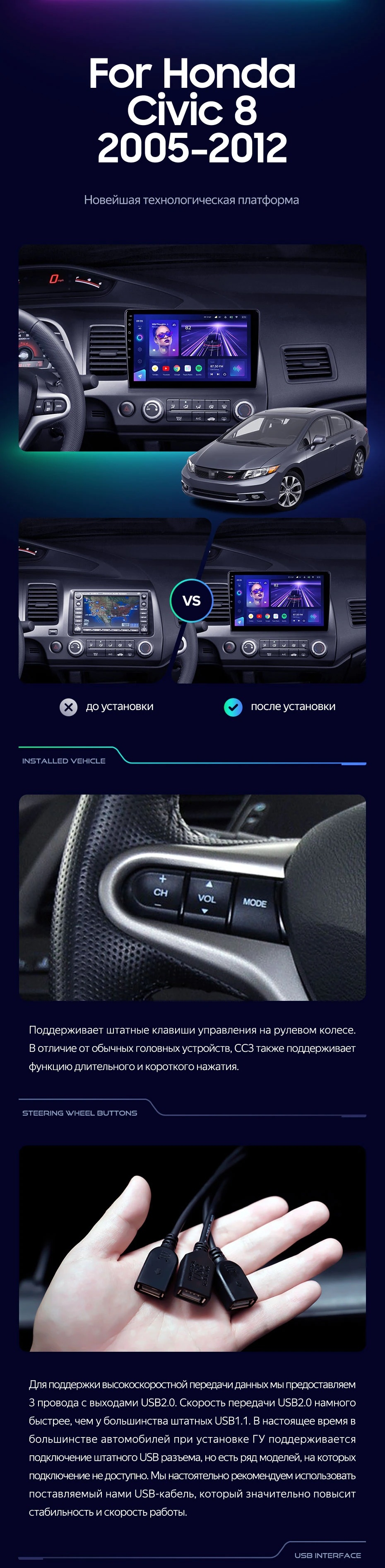 Штатная магнитола Teyes CC3 4/32 Honda Civic Hatchback (2006-2012) - купить всего за 35 970 руб. в интернет-магазине в Ульяновск Teyes.com.ru. ✓ Самый лучший выбор мультимедиа ✓ Лучшая замена штатному ГУ ✓ Тел. +7 (800) 775-31-74