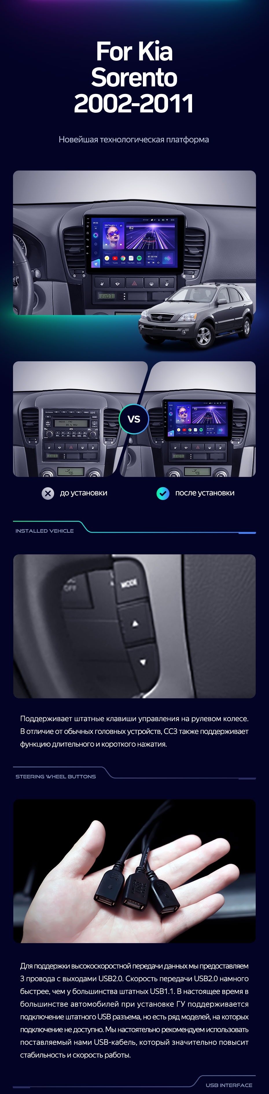 Штатная магнитола Teyes CC3 4/32 Kia Sorento BL (2002-2011) - купить всего за 34 330 руб. в интернет-магазине в Ульяновск Teyes.com.ru. ✓ Самый лучший выбор мультимедиа ✓ Лучшая замена штатному ГУ ✓ Тел. +7 (800) 775-31-74
