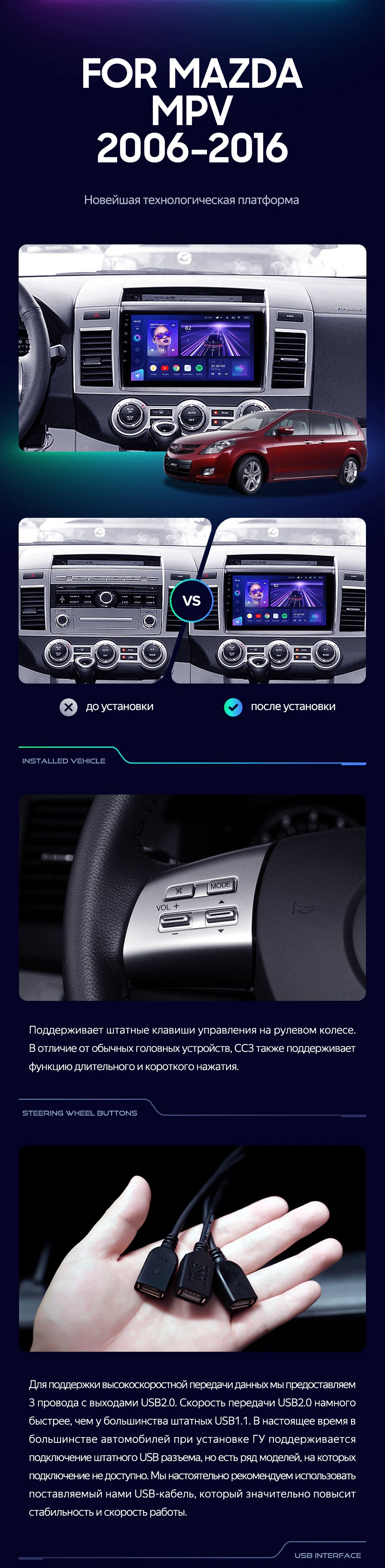 Штатная магнитола Teyes CC3 4/32 Mazda MPV LY (2006-2016) - купить всего за 34 230 руб. в интернет-магазине в Ульяновск Teyes.com.ru. ✓ Самый лучший выбор мультимедиа ✓ Лучшая замена штатному ГУ ✓ Тел. +7 (800) 775-31-74
