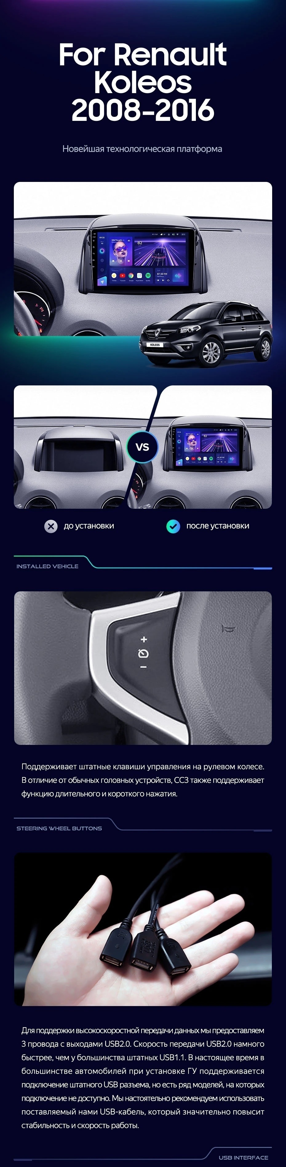 Штатная магнитола Teyes CC3 4/32 Renault Koleos (2008-2016) Тип-A - купить всего за 36 030 руб. в интернет-магазине в Ульяновск Teyes.com.ru. ✓ Самый лучший выбор мультимедиа ✓ Лучшая замена штатному ГУ ✓ Тел. +7 (800) 775-31-74