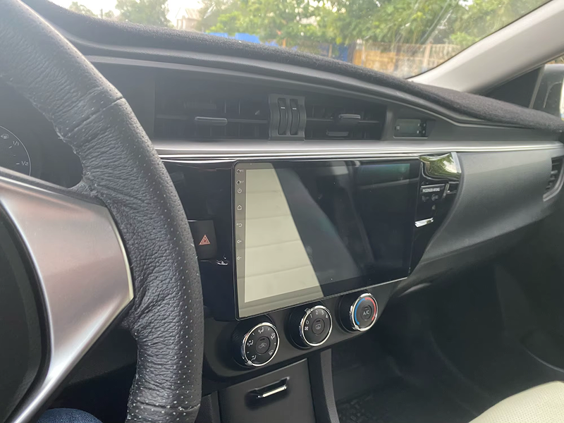 Защитное стекло 2,5D имеет слегка скругленные грани. Эта особенность делает его практически незаметным в районе краев экрана магнитолы, где он ограничен рамками корпуса.