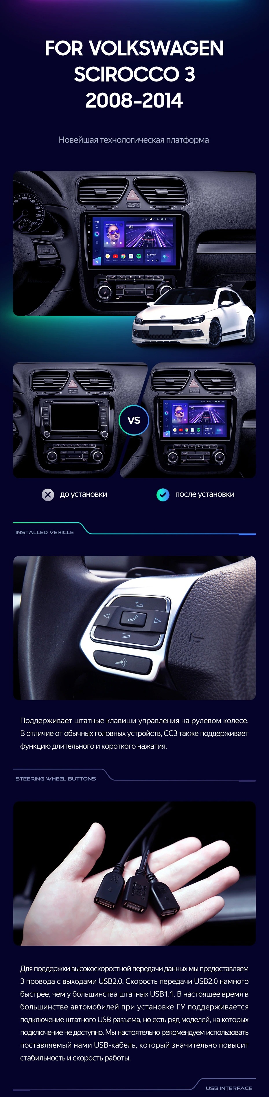 Штатная магнитола Teyes CC3 4/32 Volkswagen Scirocco (2008-2014) F2 - купить всего за 35 130 руб. в интернет-магазине в Ульяновск Teyes.com.ru. ✓ Самый лучший выбор мультимедиа ✓ Лучшая замена штатному ГУ ✓ Тел. +7 (800) 775-31-74