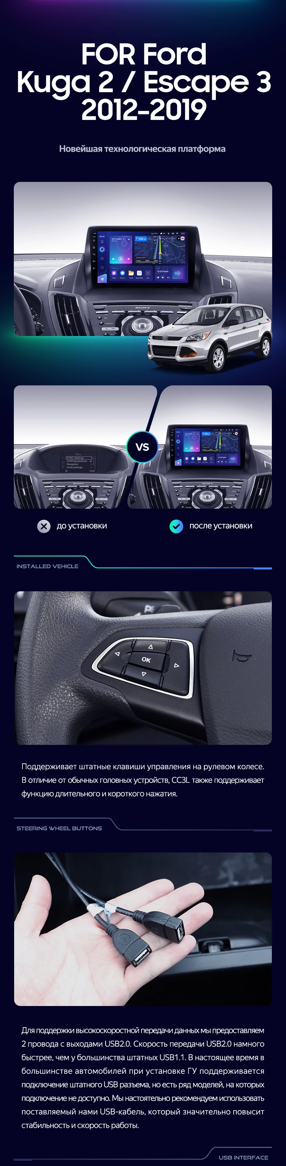 Штатная магнитола Teyes CC3L 4/32 Ford Escape 3 (2012-2019) Тип-A - купить всего за 29 420 руб. в интернет-магазине в Ульяновск Teyes.com.ru. ✓ Самый лучший выбор мультимедиа ✓ Лучшая замена штатному ГУ ✓ Тел. +7 (800) 775-31-74