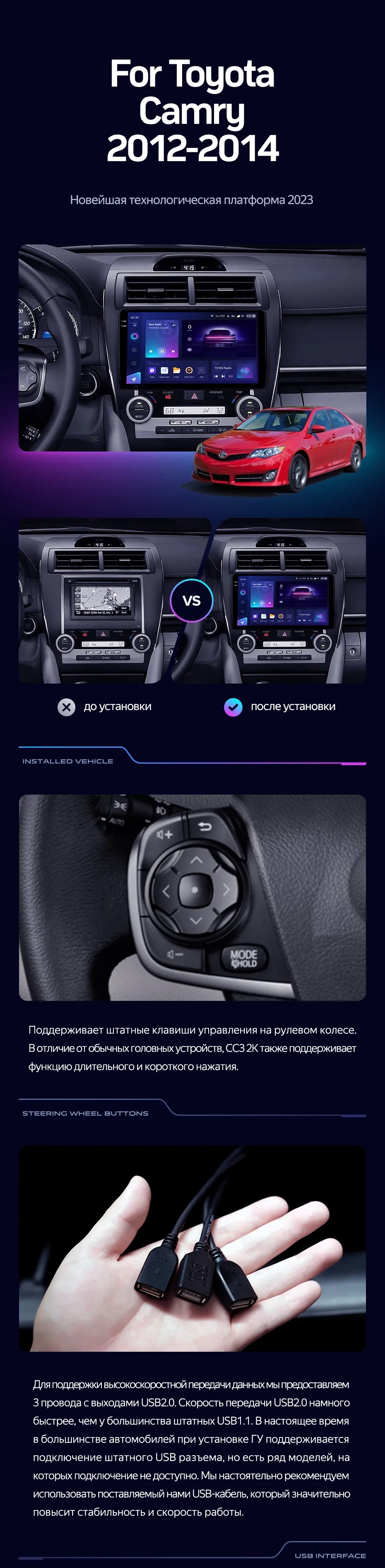 Штатная магнитола Teyes CC3L WiFi 2/32 Toyota Camry 7 XV 50 55 (2012-2014) Америка - купить всего за 17 100 руб. в интернет-магазине в Ульяновск Teyes.com.ru. ✓ Самый лучший выбор мультимедиа ✓ Лучшая замена штатному ГУ ✓ Тел. +7 (800) 775-31-74