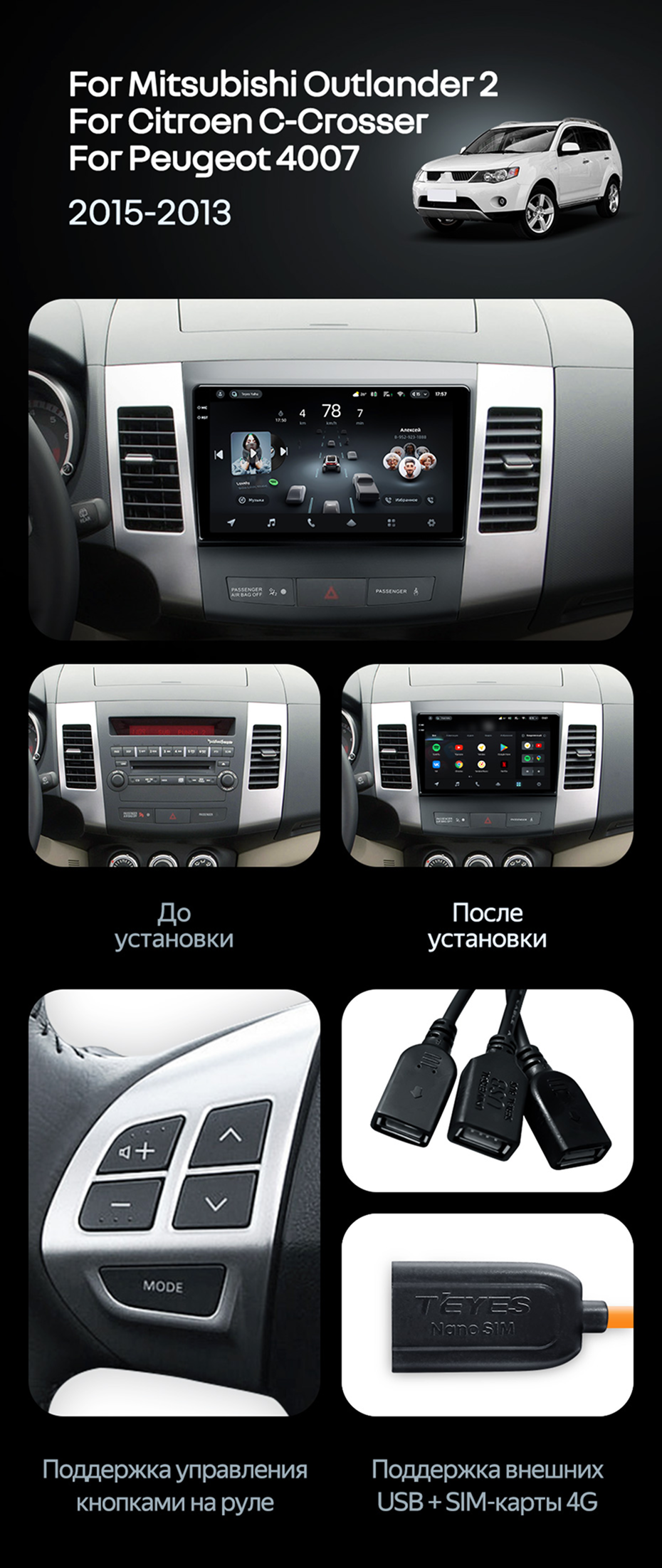 Штатная магнитола Teyes CC4 6/64 Mitsubishi Outlander 2 (2005-2011) Тип-B - купить всего за 44 840 руб. в интернет-магазине в Ульяновск Teyes.com.ru. ✓ Самый лучший выбор мультимедиа ✓ Лучшая замена штатному ГУ ✓ Тел. +7 (800) 775-31-74