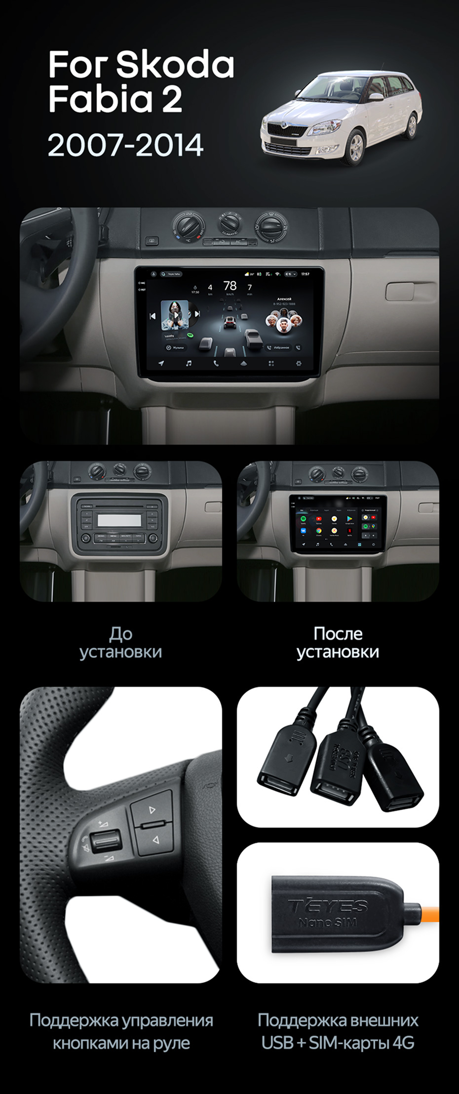 Штатная магнитола Teyes CC4 6/64 Skoda Fabia 2 (2007-2014) - купить всего за 47 800 руб. в интернет-магазине в Ульяновск Teyes.com.ru. ✓ Самый лучший выбор мультимедиа ✓ Лучшая замена штатному ГУ ✓ Тел. +7 (800) 775-31-74