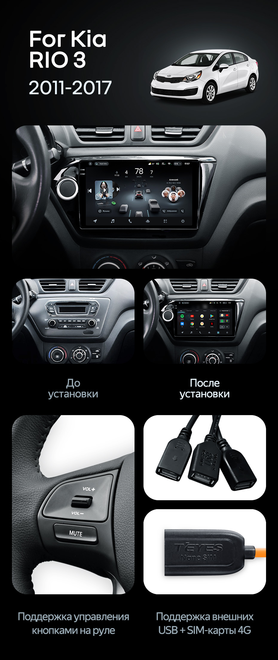 Штатная магнитола Teyes CC4 Pro 12/256 Kia Rio 3 (2011-2017) - купить всего за 67 800 руб. в интернет-магазине в Ульяновск Teyes.com.ru. ✓ Самый лучший выбор мультимедиа ✓ Лучшая замена штатному ГУ ✓ Тел. +7 (800) 775-31-74