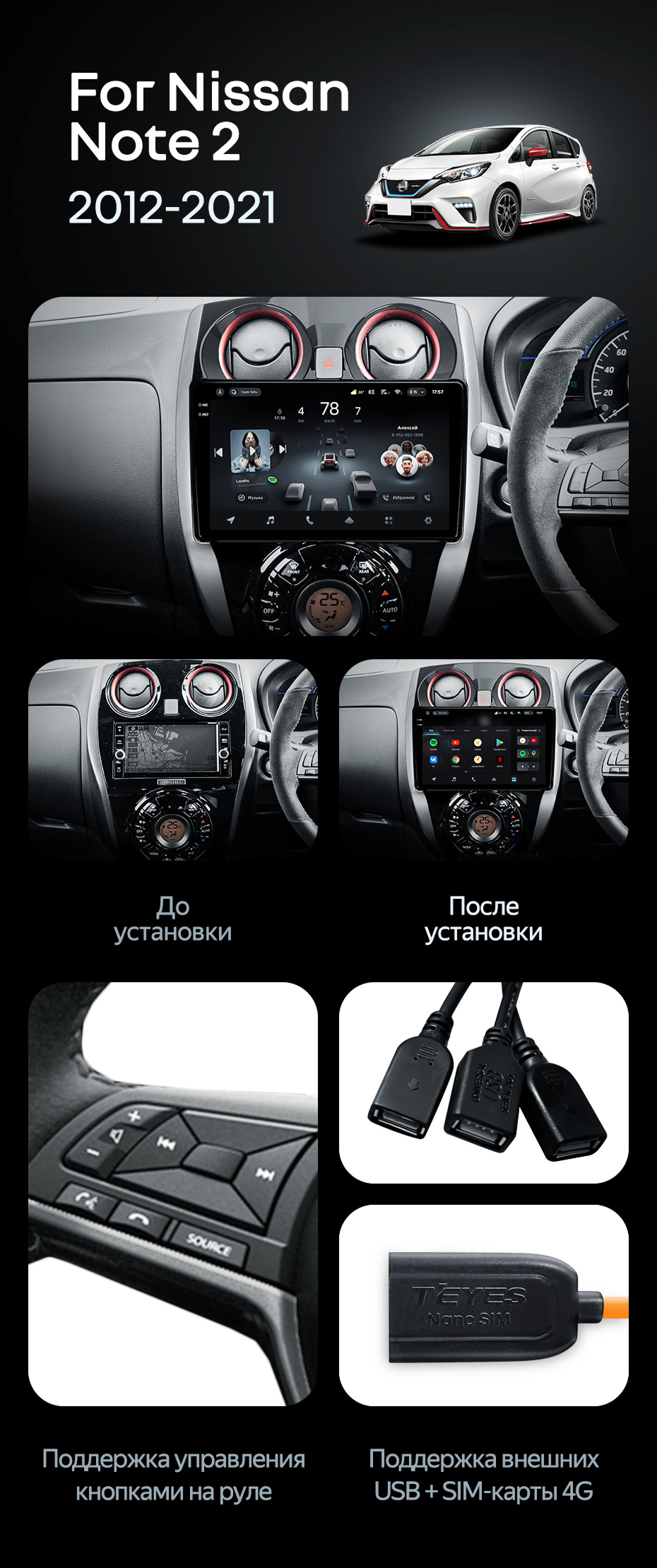Штатная магнитола Teyes CC4 Pro 12/256 Nissan Note 2 E12 (2012-2021) - купить всего за 69 240 руб. в интернет-магазине в Ульяновск Teyes.com.ru. ✓ Самый лучший выбор мультимедиа ✓ Лучшая замена штатному ГУ ✓ Тел. +7 (800) 775-31-74