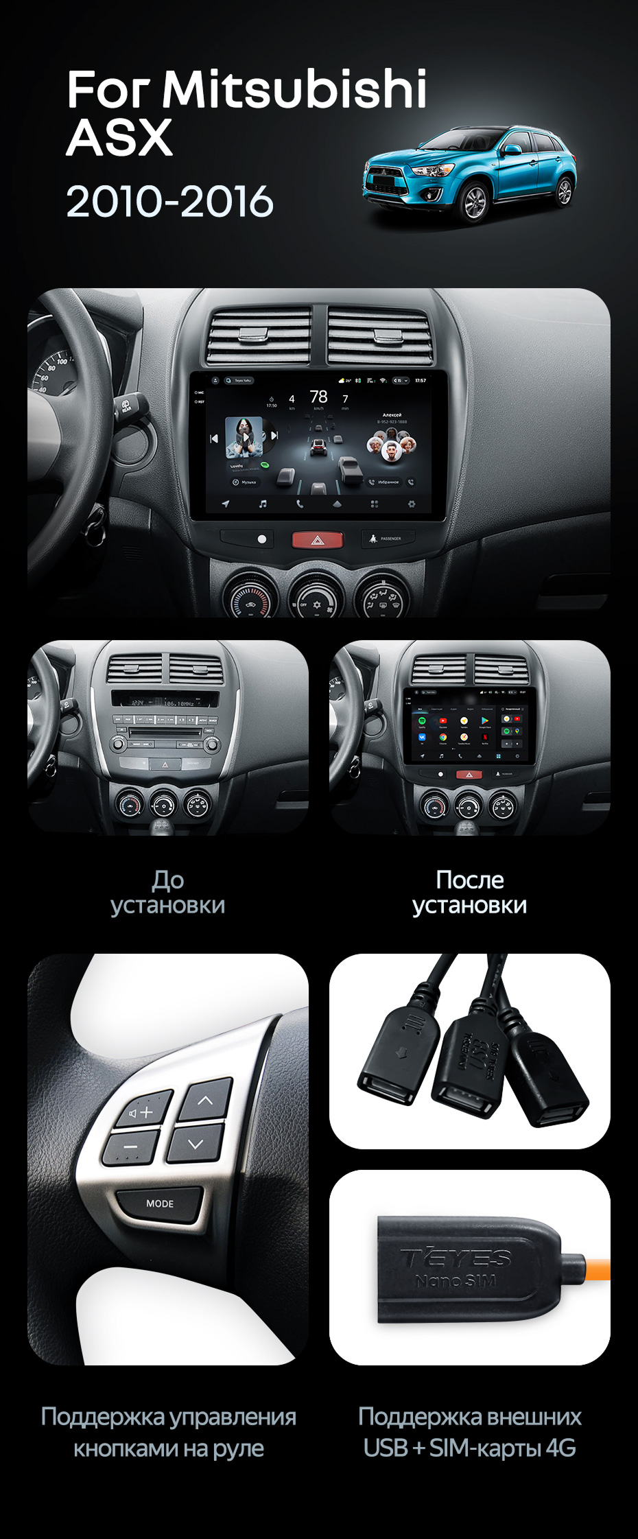 Штатная магнитола Teyes CC4 Pro 8/128 Mitsubishi ASX 1 (2010-2016) Тип-B - купить всего за 59 250 руб. в интернет-магазине в Ульяновск Teyes.com.ru. ✓ Самый лучший выбор мультимедиа ✓ Лучшая замена штатному ГУ ✓ Тел. +7 (800) 775-31-74