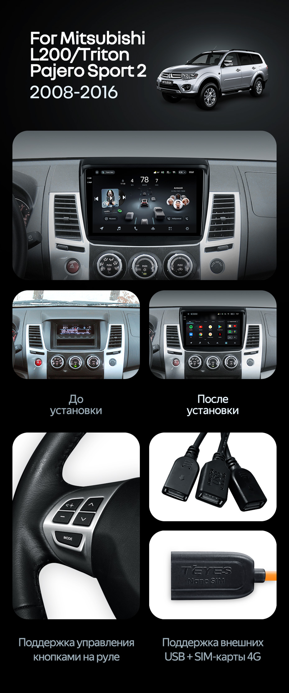 Штатная магнитола Teyes CC4 Pro 8/128 Mitsubishi L200 (2008-2016) - купить всего за 58 440 руб. в интернет-магазине в Ульяновск Teyes.com.ru. ✓ Самый лучший выбор мультимедиа ✓ Лучшая замена штатному ГУ ✓ Тел. +7 (800) 775-31-74