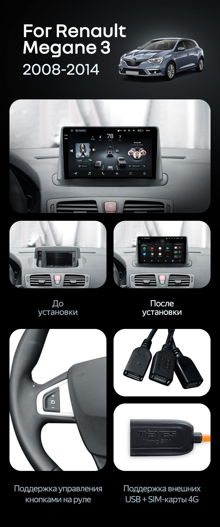 Штатная магнитола Teyes CC4 Pro 8/128 Renault Megane 3 (2008-2014) - купить всего за 60 100 руб. в интернет-магазине в Ульяновск Teyes.com.ru. ✓ Самый лучший выбор мультимедиа ✓ Лучшая замена штатному ГУ ✓ Тел. +7 (800) 775-31-74