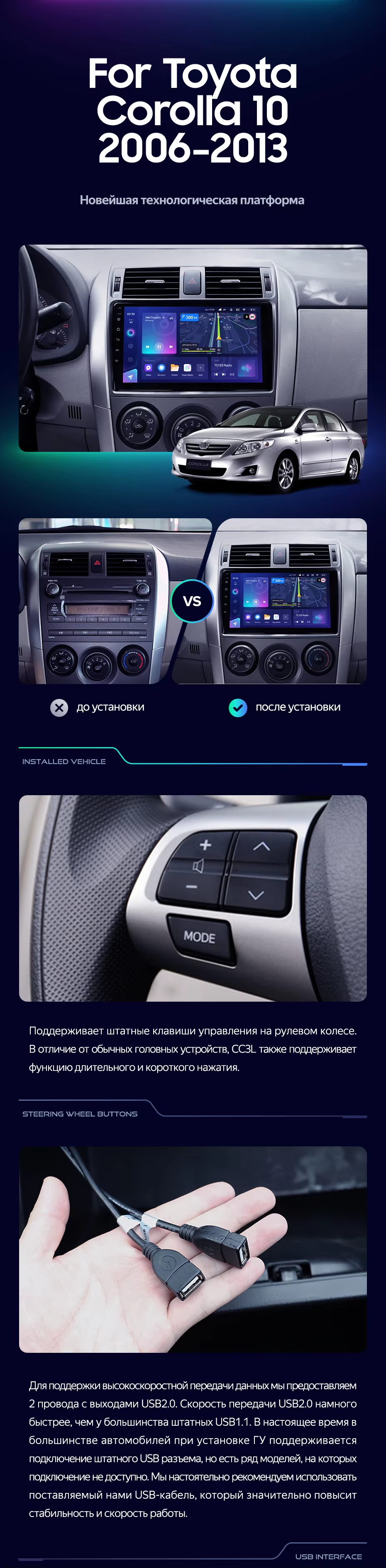 Штатная магнитола Teyes CC4 Pro 8/128 Toyota Corolla 10 E140 E150 (2006-2013) Тип-B - купить всего за 57 850 руб. в интернет-магазине в Ульяновск Teyes.com.ru. ✓ Самый лучший выбор мультимедиа ✓ Лучшая замена штатному ГУ ✓ Тел. +7 (800) 775-31-74