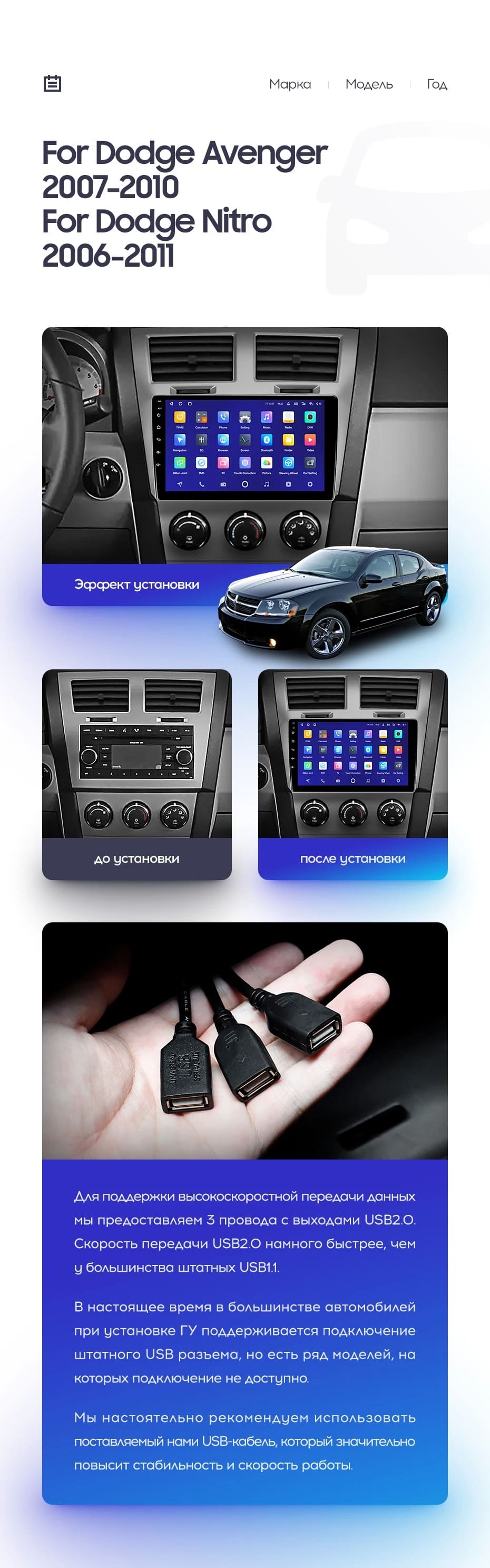 | USB | 3×USB 2.0 + USB 3.0 | Доп. аксессуары | Передняя/задняя AHD-камера, DVR-регистратор, TPMS, парковочный OBD, Type-C → HDMI |