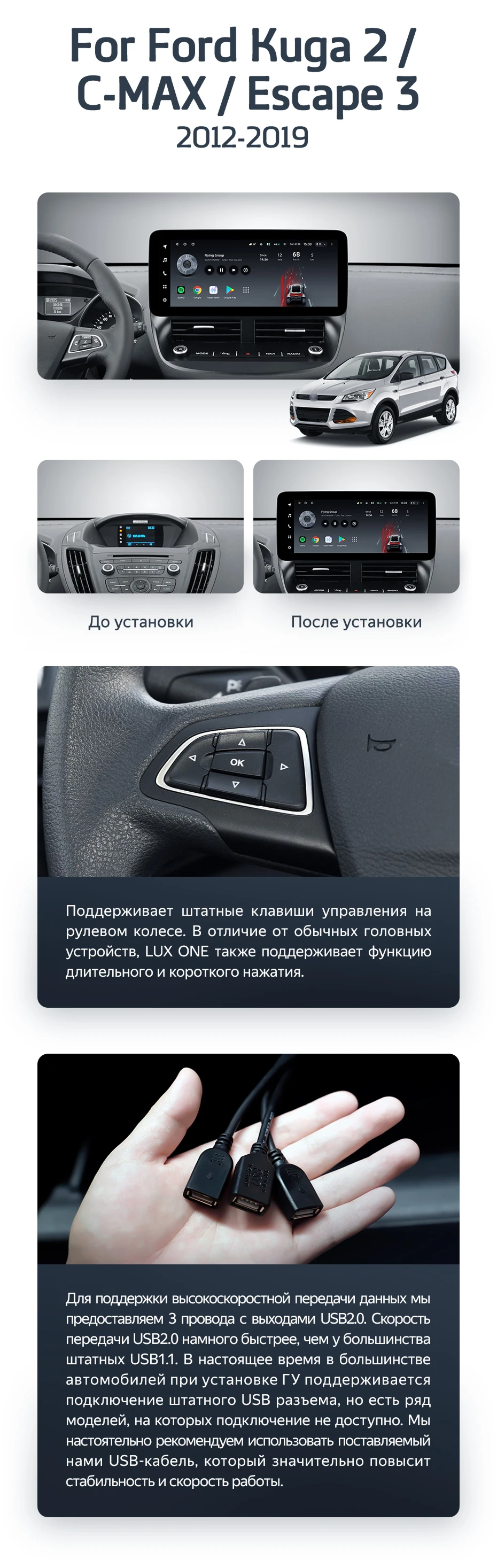 Штатная магнитола Teyes LUX ONE 4/64 Ford Escape 3 (2012-2019) - купить всего за 44 700 руб. в интернет-магазине в Ульяновск Teyes.com.ru. ✓ Самый лучший выбор мультимедиа ✓ Лучшая замена штатному ГУ ✓ Тел. +7 (800) 775-31-74